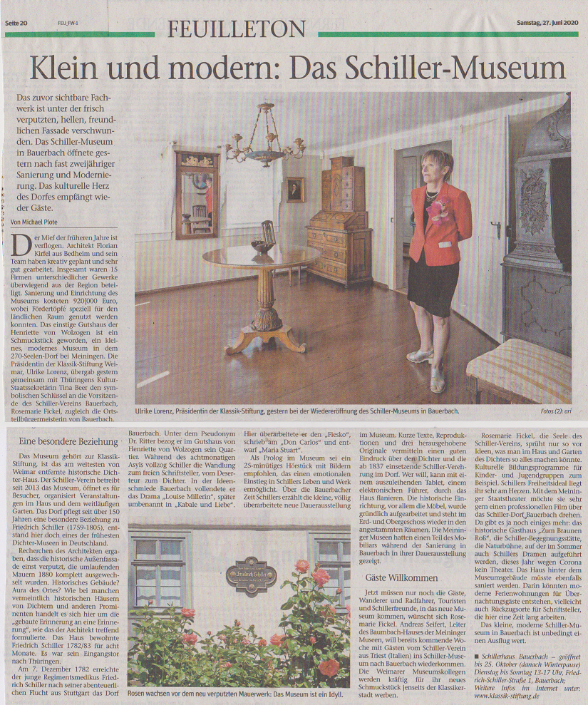 Schillermuseum ab 26.6.2020 nach umfangreicher