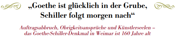 Denkmals der beiden Dichter angeregt wurden. Und zunächst wieder im Sande verflossen. Erst drei Jahre nach Goethes Tod 1835 wurde ein Komitee mit herausragendenPersönlichkeiten